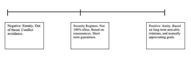 Therefore, the three types of security interdependence can be plotted on a one-dimensional graph as shown below:[11]